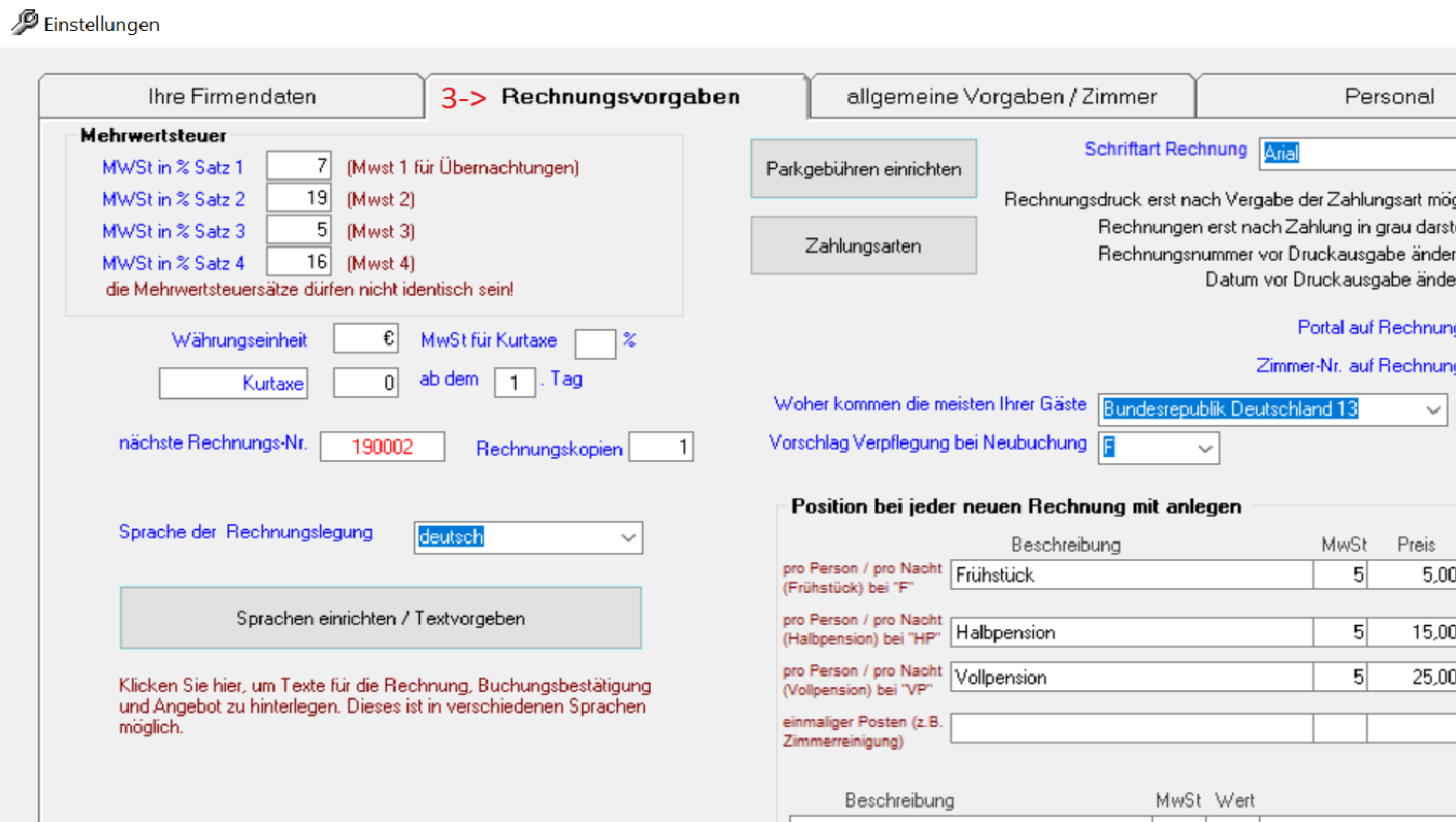 Klicken Sie dann auf den Reiter "Rechnungsvorgaben"